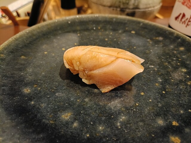 ハモのお吸い物から始まり、伊勢海老のお造り、貝紐和え、茶碗蒸しなど頂いてからお寿司となります。