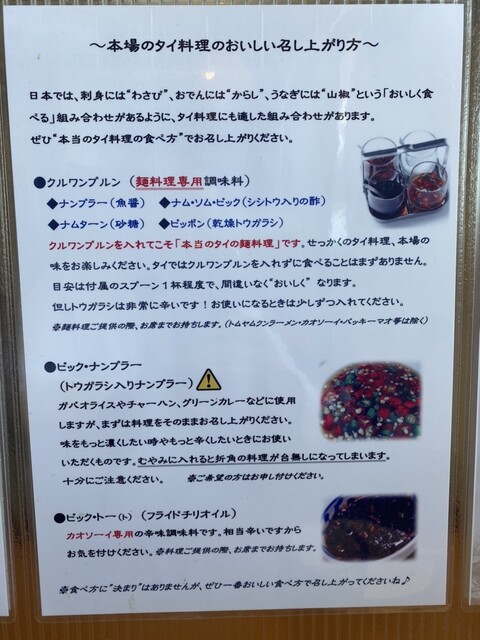 狐につままれたような気持ちで30分待ちました。お店に入って直ぐにその人気の秘密が分かったような気がしました。店主や従業員の皆さんのタイやタイ料理、お客さんに対する愛情が尋常じゃない。メニューの豊富さ、丁寧な説明、接客、全てにおいて愛情が溢れています。