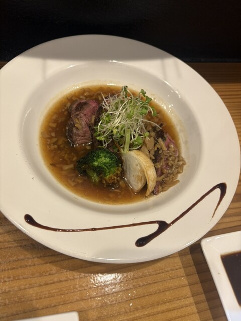 -牛ハラミのポルチーニソースにつけて