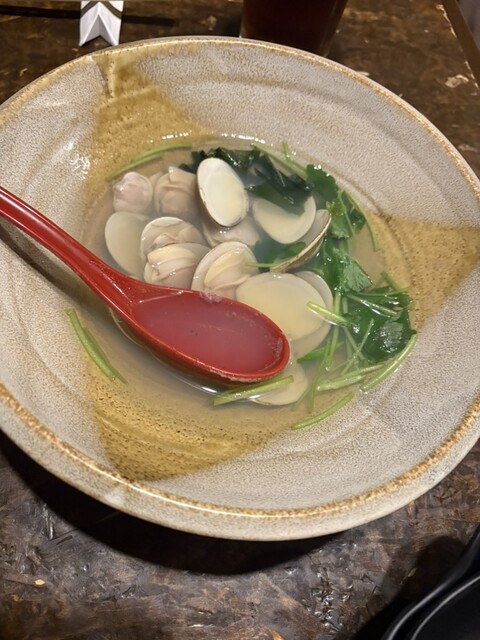 蛤は普通に美味しかったですが三つ葉の風味が無かったのが残念。串物もそうですが、作りおいたものを温め直しているみたいです。お客さん多いので仕方ないところでしょうか。