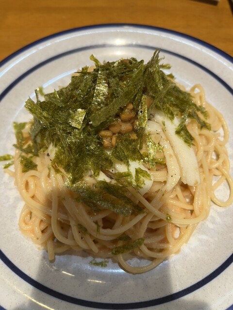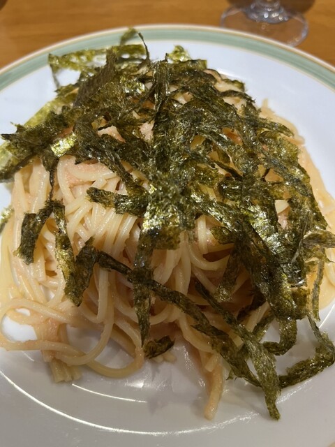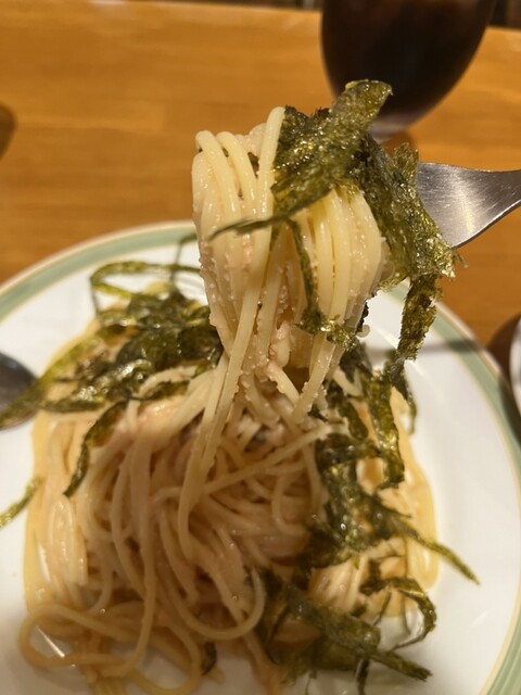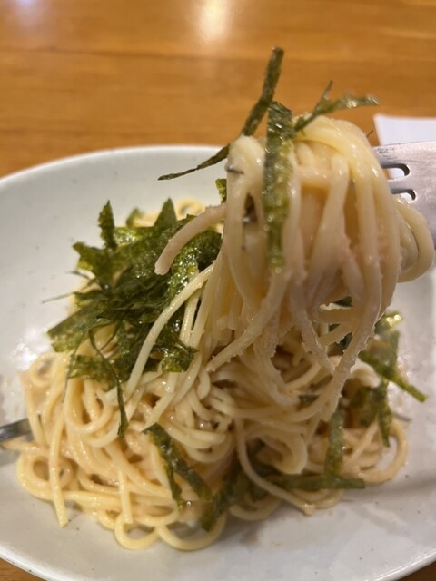 「明太子・しめじ・青紫蘇・ベーコンのパスタ」、
