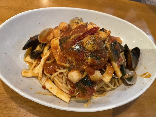 友達は、魚介のトマトソースのBセット(ドリンク、サラダ付き)選びました。