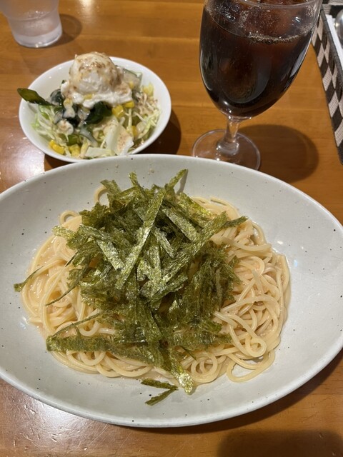 ・たらこ海苔/Bセット、ドリンクとサラダ