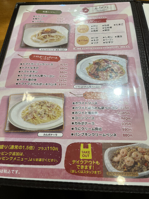 友人は、ここのお店の、「豚高菜ピラフ」と「たらこ海苔」のパスタしか食べません!笑
