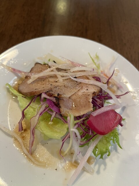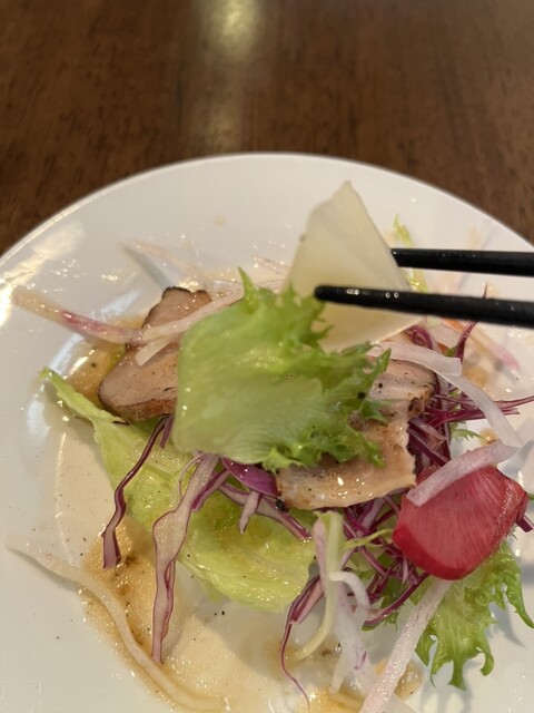 こちらのお店のサラダは、ほんのり柚子胡椒香る物で、めっちゃ美味しい。