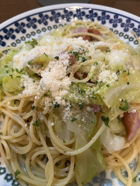 春キャベツの甘味、ソーセージのコク、ペペロンチーノが最高でした!