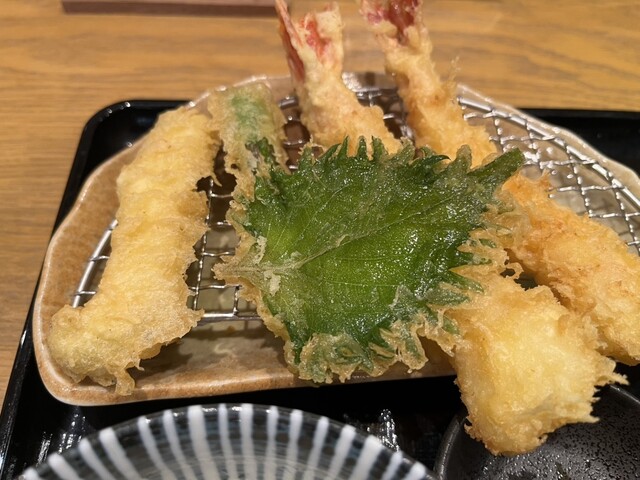 ・天ぷら盛り合わせ(茄子・キス・海老・蓮根・薩摩芋・獅子唐)