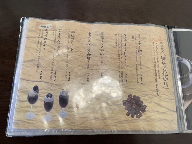 料理はカフェらしい軽食からスイーツまで幅広く、私のお気に入りはホットサンド。今回は「トマトとハムのバジルソース」をいただきましたが、外はカリッと香ばしく、中はジューシーなトマトとハムがバジルの香りと重なり、思わずもう一口…と手が止まらないおいしさでした。セットのサラダやフルーツがついてバランスも◎。ドリンクは炭酸の効いたレモンコーラを合わせて、爽やかな口直しにぴったりでしたよ(^ω^)