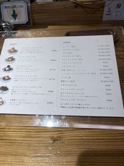 クロッフルはアイスを+¥110でクリームチーズに変更可能。