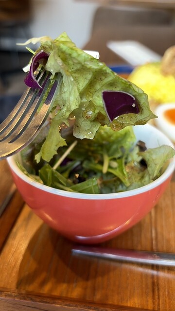 最初にいただいたサラダは、オリジナルのオイルが印象的で