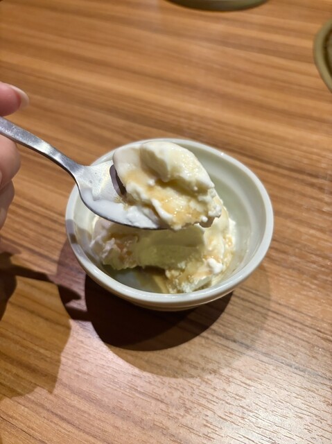 モナカはパリパリで安定に美味しかったです。そして驚いたのが、焼肉屋のデザートとは思えないくらい味が濃厚で香りのいい抹茶アイス。求肥が上に被せられ、大福のような食感を楽しめました。求肥とモナカに抹茶アイスが合わないわけない、、、!