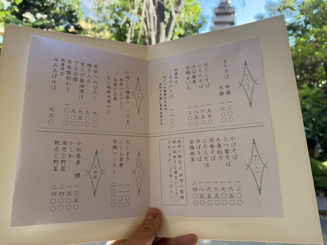 通ってるジムでよくご一緒になる方がこのお店のオーナーさんで、訪問して知ることになる百名店。下北沢駅周辺の賑わいとは打って変わって、駅から徒歩10分程に位置する静かな場所。周りには神社が点在して、ここは下北なのかと疑ってしまうほど。開店30分前から並んでる蕎麦屋は久々です。敷地は広く庭園の手入れが行き届いて、女将さんもとても気さくで感じがいい。地元の常連さんも多いようで一歩踏み入れた瞬間からアットホームな雰囲気。店内には蕎麦打ち所があり、職人の匠の技が見られるのもいい。