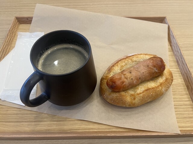 ゴールデンウィーク中の訪問なので混雑してるかと思いきや店内は他に2組ほどしかお客様はおらず、まったりした空気が流れております。今夜は一泊でゆっくりする予定、チェックインまでかなり時間があるのでこちらでのんびりお茶してます。とはいえお昼時、小腹も減っているのでベーカリーのフランクという、前回伺ったときにはなかったメニューをチョイス。ブレンドコーヒーとともにいただきます。自家製と思われるソーセージは旨味と塩味がガツンとくるタイプ。お酒のアテにもいいのではないでしょうか。パンは少しハードなタイプで美味しいですが、油がけっこう強いですね。手がベタベタになります。コーヒーは安定の美味しさ。外は雨模様ですが店内は暖かく、眠くなります。ごちそうさまでした♪