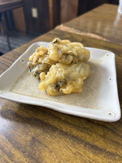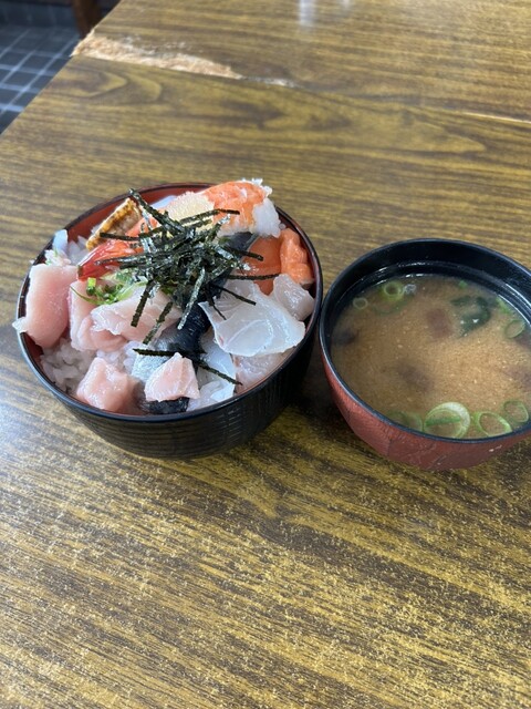 海鮮丼980円、みそ汁80円、サイドメニューの牡蠣とホタテの天ぷらをオーダーした。