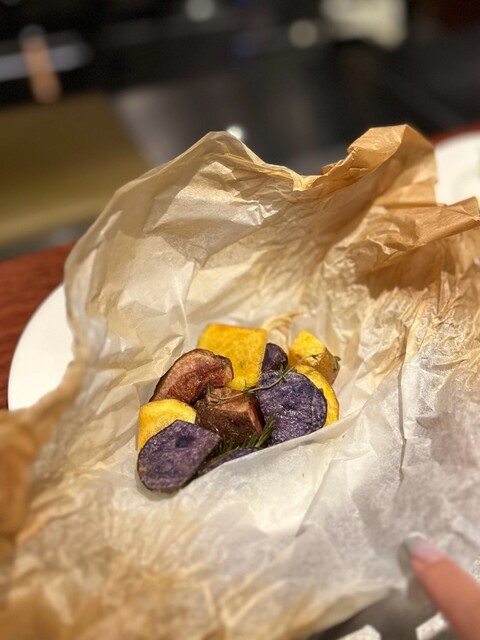 紙に包まれたポテトもめちゃくちゃ美味しかった、、。