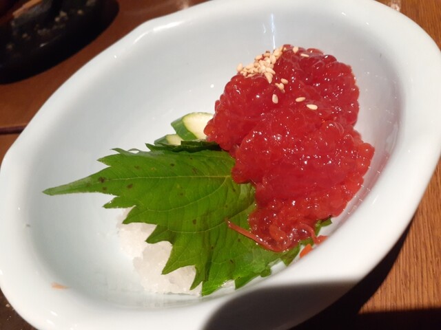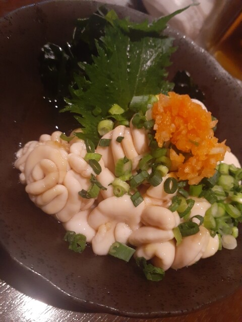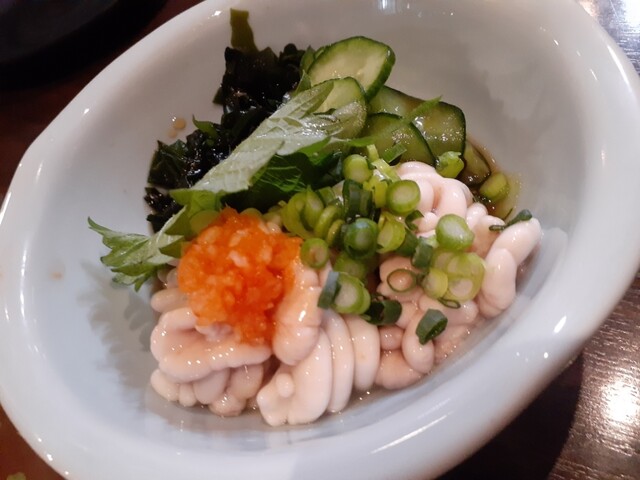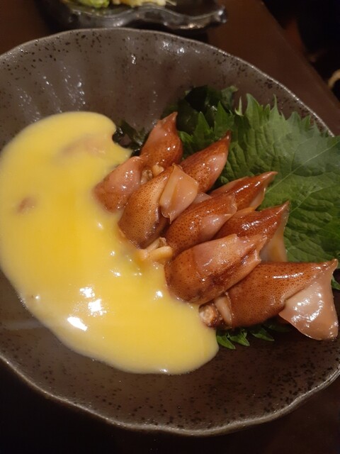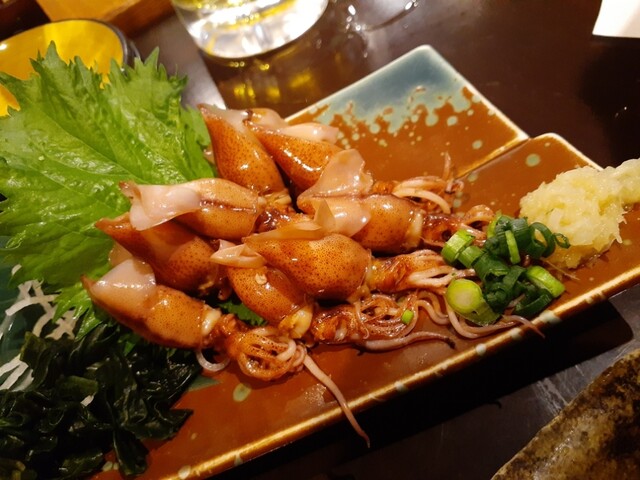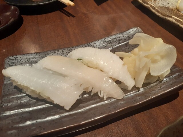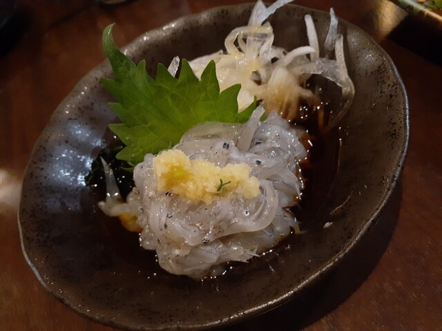 さて、メニューを見て季節ものから被らないようにホタルイカ、白子ポン酢、赤メバルのお刺身を。写真の通り、宝石のような美しさ。それぞれ美味しいのだけど、あえて特筆するならメバルの薄造りなのにコリコリというかの食感に白身魚の香りの強さがたまりません。
