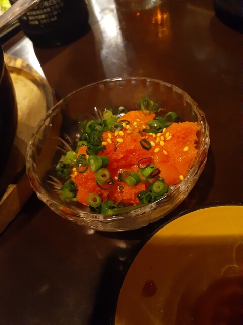 家族で来たときは食べたいものを食べたいだけ。生ビールからスタートして、明太子炙り、旬のオススメから生しらすの酢の物、白子ぽん酢を注文。