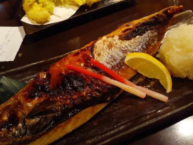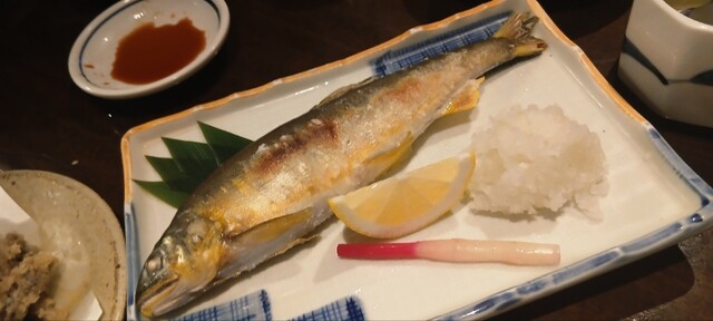 お次は焼きサンマ、、、うますぎる。久しぶりに大振りなサンマでしたがあっという間に完食。