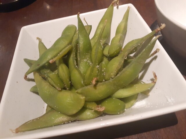 茹で空豆も食べやすく皮に包丁が入れられてあり、フレッシュな甘味に塩が最高のおつまみになります。