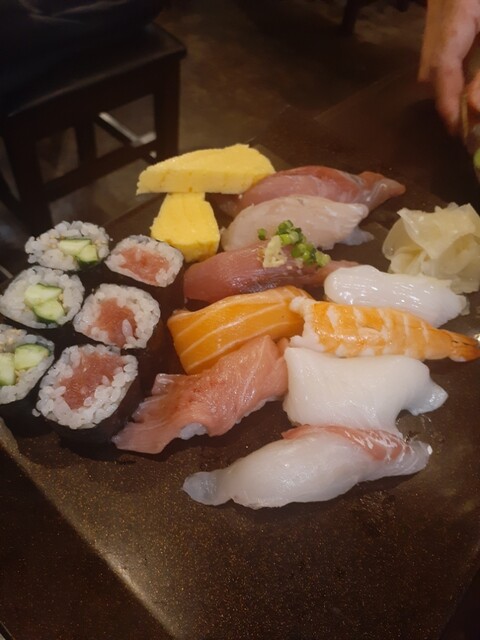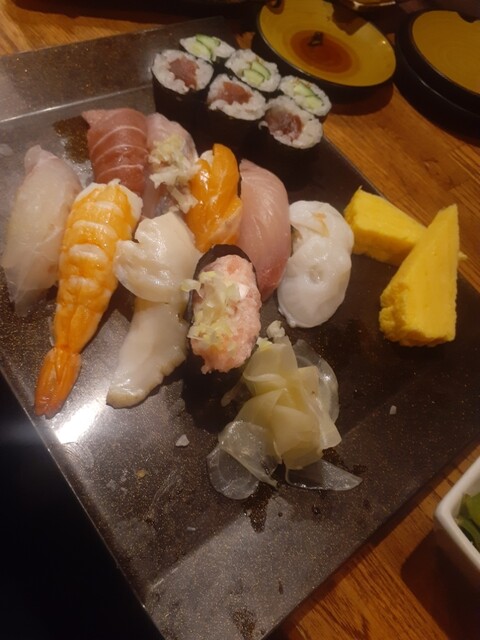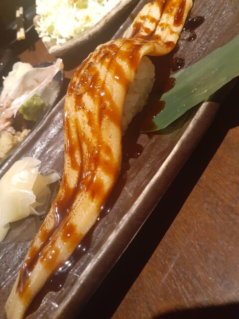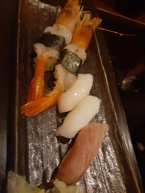 ひと息ついて美味しかった水ダコ・コウイカお刺身を追加。(この時点でもっとヤバイヤバイ) さらにひと息つく為に茶碗蒸し3つしたのにしたのに止まらず、エンガワ握り、トロサバ焼き、赤エビ握りまで。