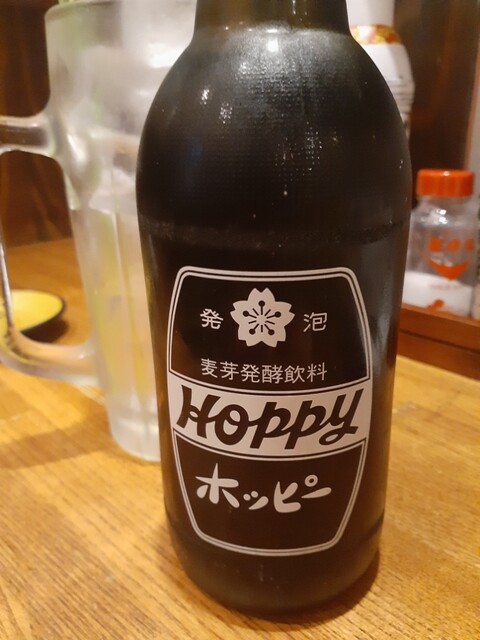 まずは、黒ホッピーから名前に覚えの無い「のれそれポン酢」を。これが大ヒット。穴子の稚魚なんですが、5センチぐらいで透き通った身がとても甘味があり、薄く味付けされたポン酢との相性が抜群。調べると高知の春の珍味なんだとか。