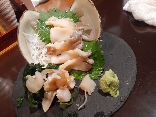 とはいえ、オススメメニューにある通り、目移りする海鮮の数々。貝の肝で作った味噌(貝もデカイ、大根もうまい)でスタートしました。