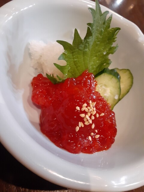 酒のあてに定番から刺身盛り、チーズ味噌漬け、塩レバー、山芋の浅漬けを追加で。本日はまさかの9点で、石垣鯛、ホタテ、生マグロ(冷凍無し)、スズキ、鰯、ヤリイカ、アジ、石鯛、サーモンでした。