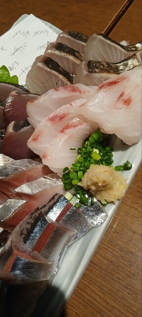 特旬三点盛りは、ホタルイカ、カンパチ、水ダコ、カツオ、マグロ、アジ、ホウボウ。カンパチの脂乗りもよく、ホウボウも厚く切られており、刺身盛りと思えないお肉を食べてるような満足感。