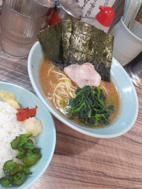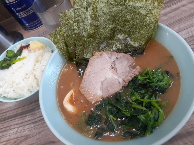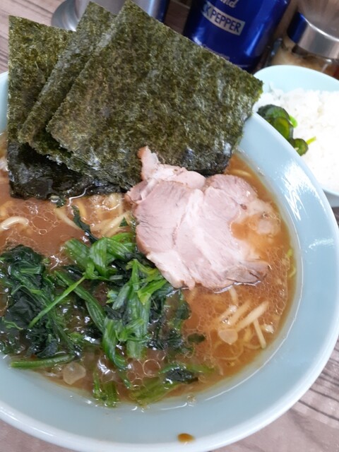 ド安定の本店ラーメン、半玉、ほうれん草増し、のり増しが嬉しいですね。