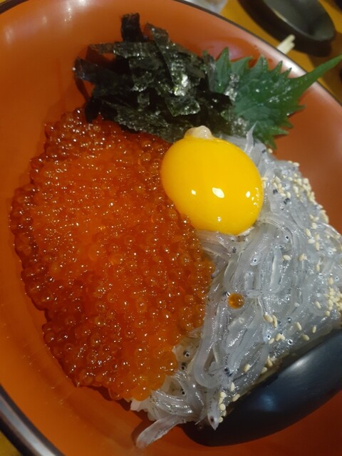 芋焼酎のお湯割り(鍋に焼酎、水を入れて温めるから超熱い)を追加して単品釜揚げしらすに、いくら生しらす丼、単品いくらとオススメメニューを満喫しました!!