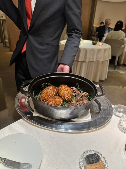 最後のメインディッシュに出てくる鳩のお肉には少し抵抗ありましたが柔らかく美味しかったです。デザートも甘すぎず最後まで食べれました。席は全部埋まってました。コース全部で3時間半かかりました。