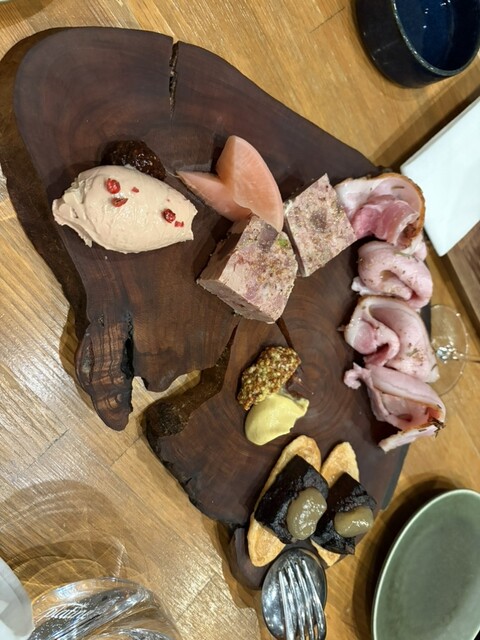 シャルキュトリーはどれも間違いない味で、中でも豚の血を使ったパテ?のような一品が秀逸!