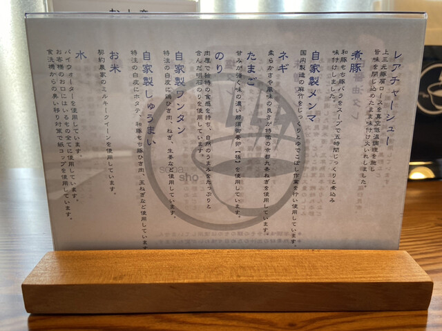 まぁ初めての来店なので、ここは王道の特製醤油ラーメンにしたいと思います。妻は塩チャーシューそばに決定。