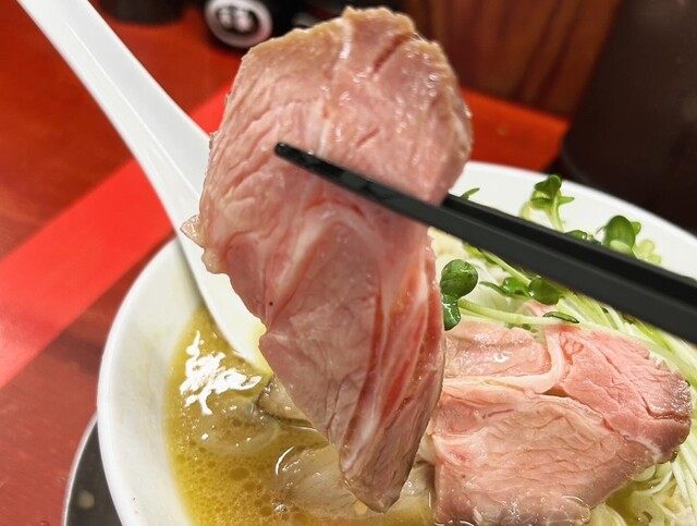 豚バラチャーシューです。こちらも肉感しっかりでレアに負けないくらい美味しいです☆