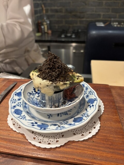また、器やカトラリーへのこだわりも見事で、料理とともに視覚的にも楽しませてくれます。特に印象的だったのは、目の前で惜しげもなくトリュフを削っていただける演出。香りがふわっと広がり、料理全体を包み込むような贅沢なひとときを味わえました。