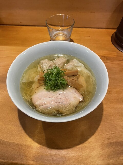 狛江時代に醤油をいただいたので、今回は塩をいただきました。塩わんたん1450円細麺をチョイス、オーソドックスにして最高の塩ラーメンです。