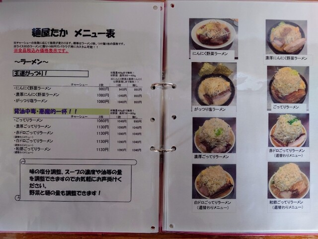 ラーメンの種類が豊富ですが、G系メニューが多めです。