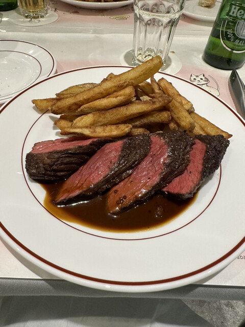 パリの裏通りの定食屋の雰囲気!お値段以上の美味しさでした。赤身の肉が外カリっと、中ジューシーで柔らかく美味しく頂きました。