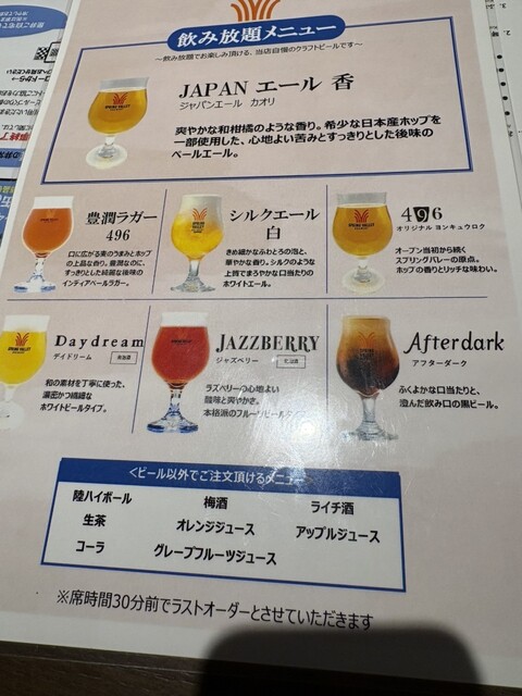 ビール以外も飲み放題ですが、せっかく醸造所に来たから、7種のビールを中心にいただきました。