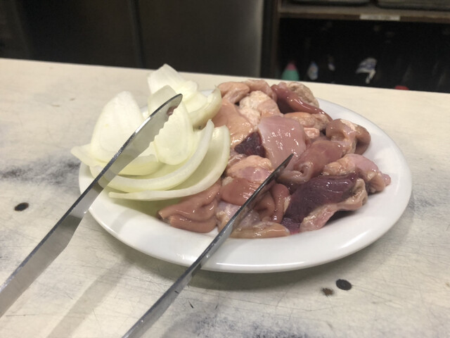 ホルモン、玉ねぎがドン!うわ〜たまらない