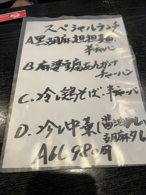 名物という黒胡麻担々麺と黒酢酢豚を注文。どちらも聞き馴染みのないメニューだったが、出てくると本当に色が黒い。黒胡麻担々麺は辛味を抑えてあるマイルドで濃厚なスープが絶品。そぼろ肉と麺の食感も良く美味。黒酢酢豚は皮がカリカリとしているが、やや大きめでしっかり弾力のある豚肉から旨みが溢れてくる。これは美味しい!