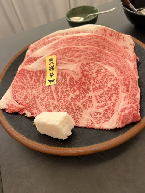 メインのすき焼きは、黒樺牛(くろはなぎゅう)の霜降り肉がとろけました