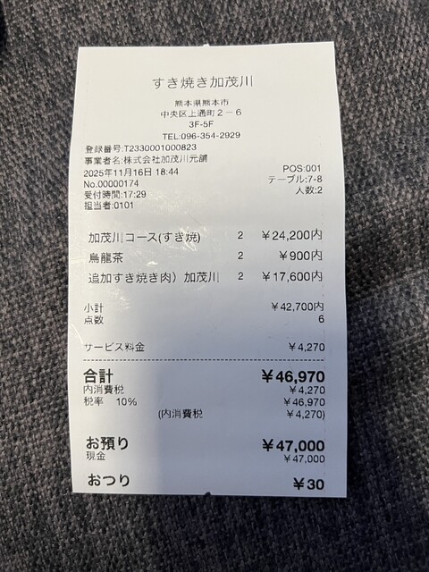 また熊本に遊びに来たので何を食べようかと思いましたが、熊本のすき焼きの名店「すき焼 加茂川」さんにお邪魔致しました