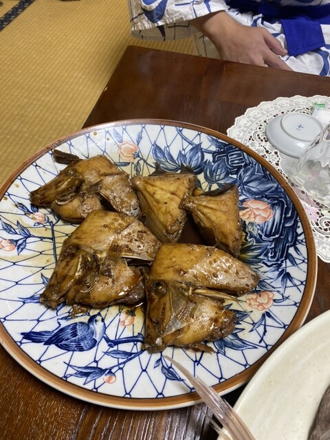 伊勢海老(刺身と焼き)、アワビ・タイ・ヒラメ・アコウ・サワラ・ブリ・カツオ・イカのお刺身、小エビの天ぷら、焼き魚、カワハギの煮付け、ナマコ、伊勢海老のお味噌、おみかん。