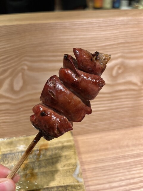 ここから焼鳥が始まり、まず初めはせせり。こちらはお好みでからしを。言わずもがな、ひと口目から美味しい。これは次の品が楽しみになります。