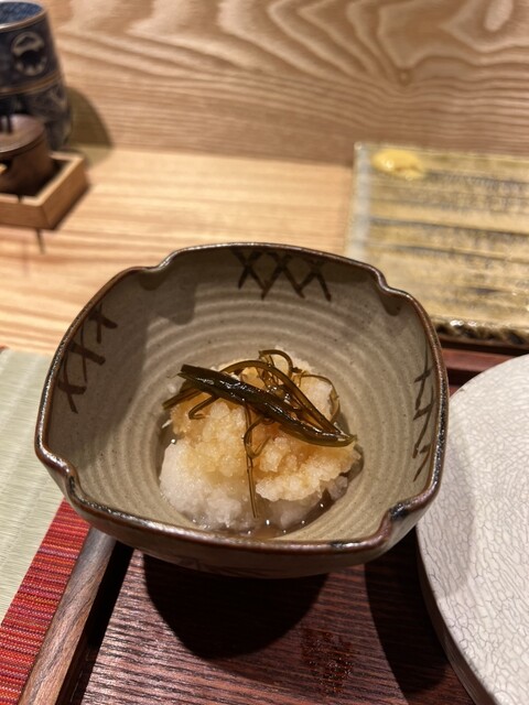 鮎の素麺は鮎の一夜干しを揚げているそう。長野県産の天龍鮎。身が締まっているので旨みも凝縮され、揚げられていることで骨や尻尾までパリパリと食べられてしまう一品でした。