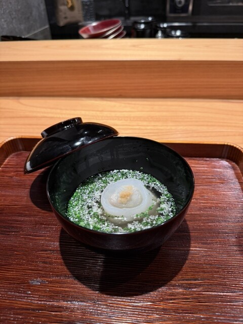 溶いたわさびと中には雲丹が入っている贅沢な一品。
