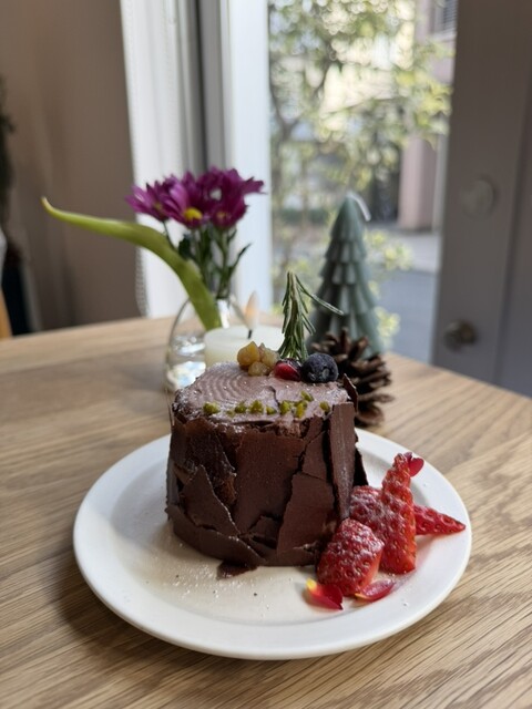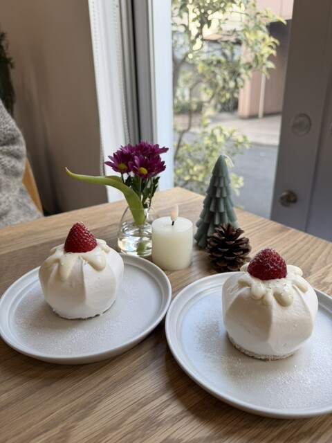 今月はクリスマスにちなんだメニューで、お店の名前がついたAIMU CAKEはいちごとピスタチオクリーム、洋梨のジャムが入ったケーキ。