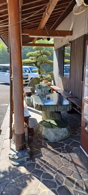 店舗も綺麗で軒下に石のテーブル席がありました。天気のいい日はこの席でうどんを食べるのも良いですね。