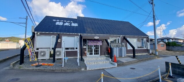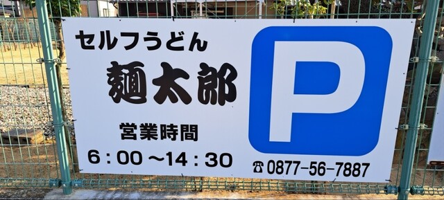 「セルフうどん 麺太郎」と白字で大きく掛かれた屋根が見えるので直ぐに分かると思います。